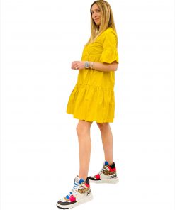 Abito MOLLY BRACKEN in cotone a balze, gonna svasata e scollo a V